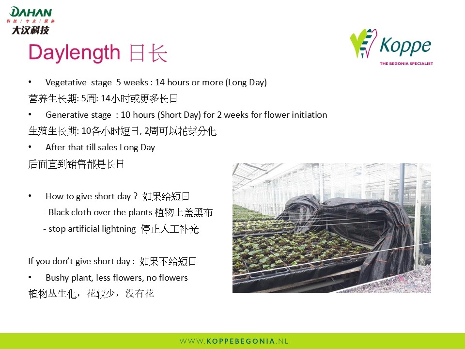 丽格海棠是非绝对性的短日植物,所以可以用长日短日来控制开花时间。