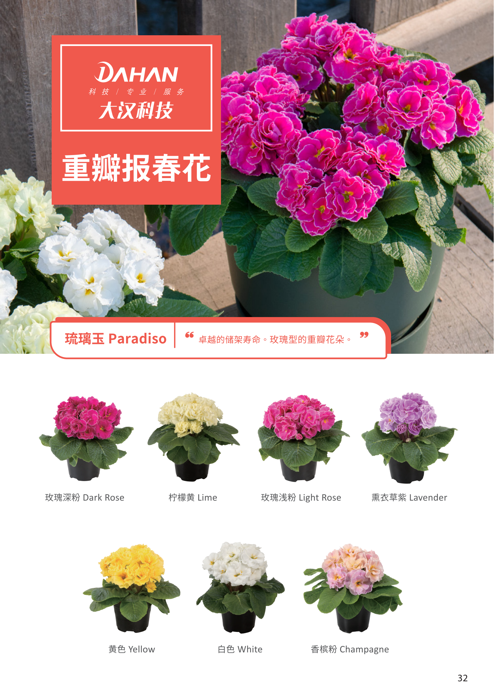 大汉公司新引入此美丽梦幻新颖花卉大花型玫瑰重瓣报春花「琉璃玉」,如果需要更多信息可以与大汉公司各区域联络。